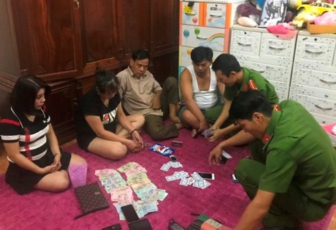 Sới thứ nhất gồm, Hoàng Thị Hằng (1980), Nguyễn Thị Dung (1971), Nguyễn Thị Hà (1975), Võ Thị Nhung (1966), đều trú tại phường Tân Giang, TP. Hà Tĩnh.