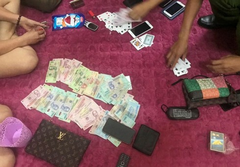 Tại thời điểm bắt giữ, có 3 sới bạc đang đánh bài theo hình thức tiến lên miền Nam, mỗi sới gồm 4 người chơi.