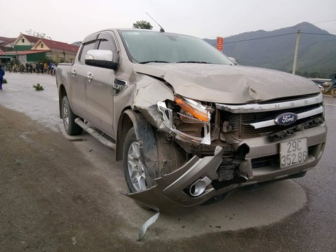Khi đang lưu thông trên QL8A hướng Sơn Tây - thị trấn Tây Sơn thì chiếc xe máy của 2 bà cháu bị xe ô tô bán tải mang BKS 29C-352.86 (chưa rõ người điều khiển) đi cùng chiều tông phải.
