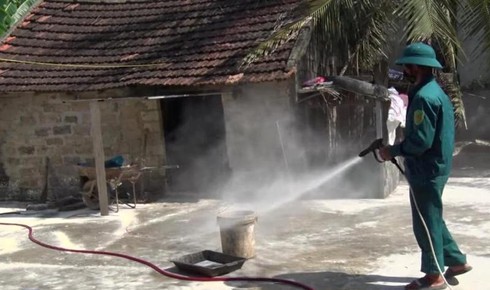 Tiến hành tiêu độc khử trùng tại hộ dân có dịch |