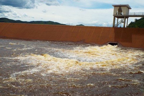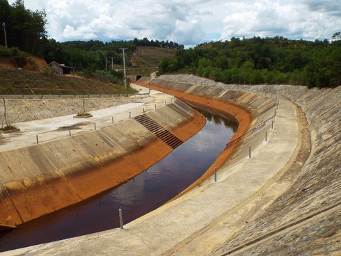 Theo quan sát của PV Infonet, nước trong lòng đập dâng có màu đỏ nhạt. Nhưng khi được xả ra kênh thì chuyển màu đỏ đục. Nếu lượng xả càng mạnh, nước cuộn lên thì màu nước càng đỏ đặc hơn và có mùi hôi càng nồng nặc hơn.