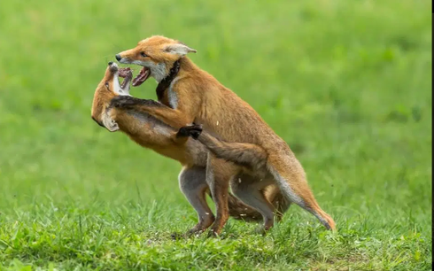 Nhiếp ảnh gia Zoltán Laki chia sẻ: "Cuộc chiến diễn ra quá nhanh nên rất khó để có thể chụp một bức ảnh sắc nét. Cáo là động vật hoang dã, chúng dễ dàng chiến đấu vì miếng ăn, ngay cả với anh chị em ruột của mình".