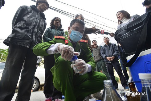 Lực lượng chức năng tiến hành lấy mẫu thử quan trắc. |