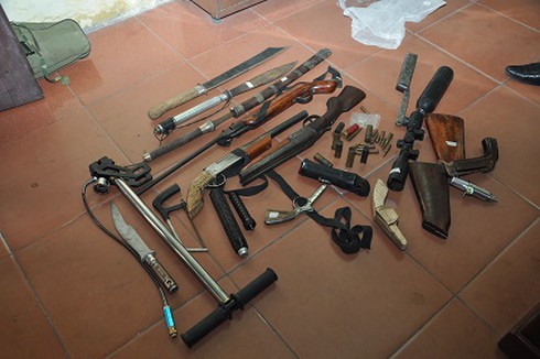Ngoài ra, tại thời điểm kiểm tra, lực lượng Công an còn phát hiện và thu giữ tại nhà Nghĩa: 03 khẩu súng (02 súng bắn đạn ghém, 01 khẩu súng hơi) và nhiều đạn của súng quân dụng K54, AK; trung liên RPD, đạn ghém và nhiều bộ phận nghi là các chi tiết của súng, đồng thời thu giữ được nhiều dao kiếm các loại.