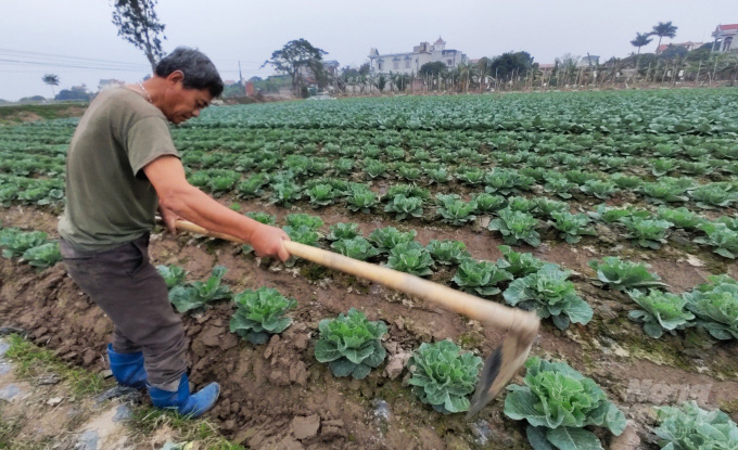 Tích cực chăm sóc lứa bắp cải mới xuống giống. Ảnh: Kế Toại.