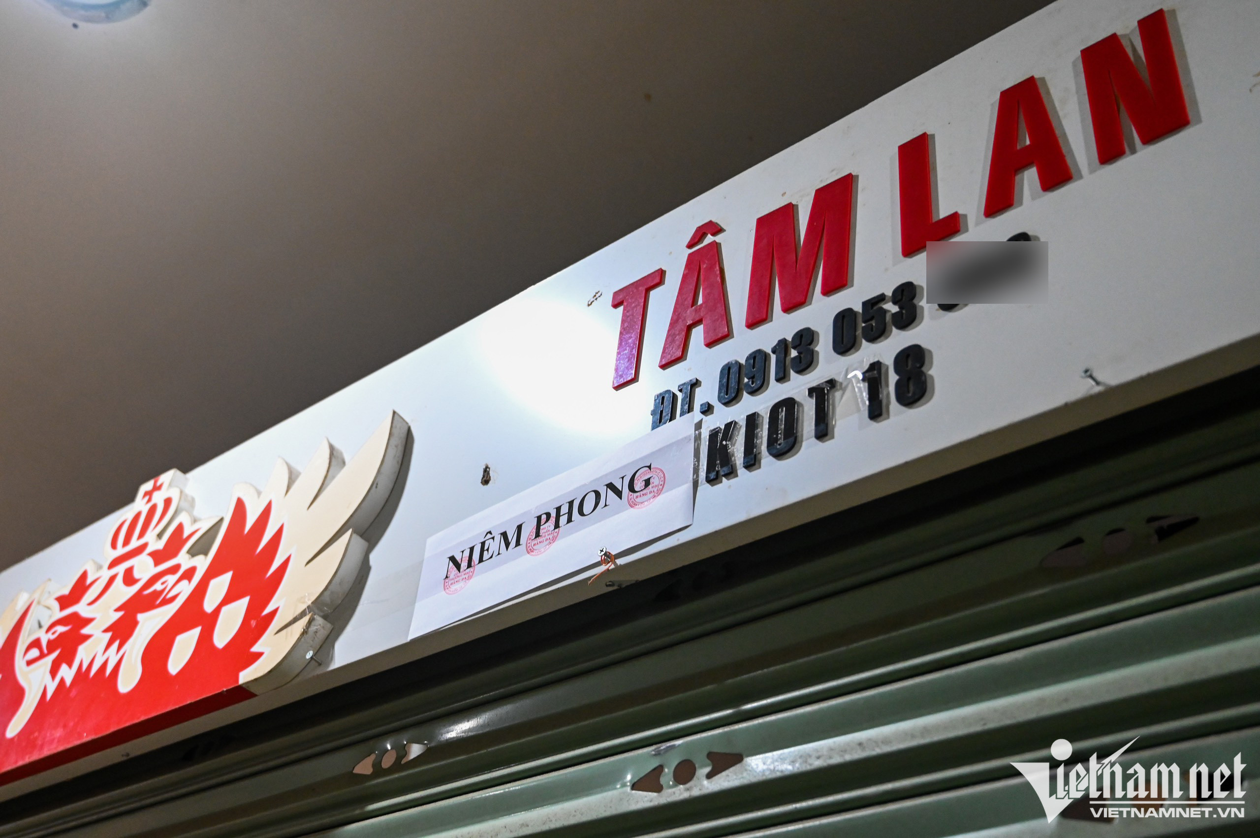Khu vực tầng 1 ngay sảnh vào chợ từng là một dãy ki-ốt bán rượu, bia, bánh kẹo, nhưng nay chỉ còn vài gian hàng còn hoạt động. Vài ki-ốt bị BQL chợ dán niêm phong do quá thời hạn thanh toán mặt bằng.