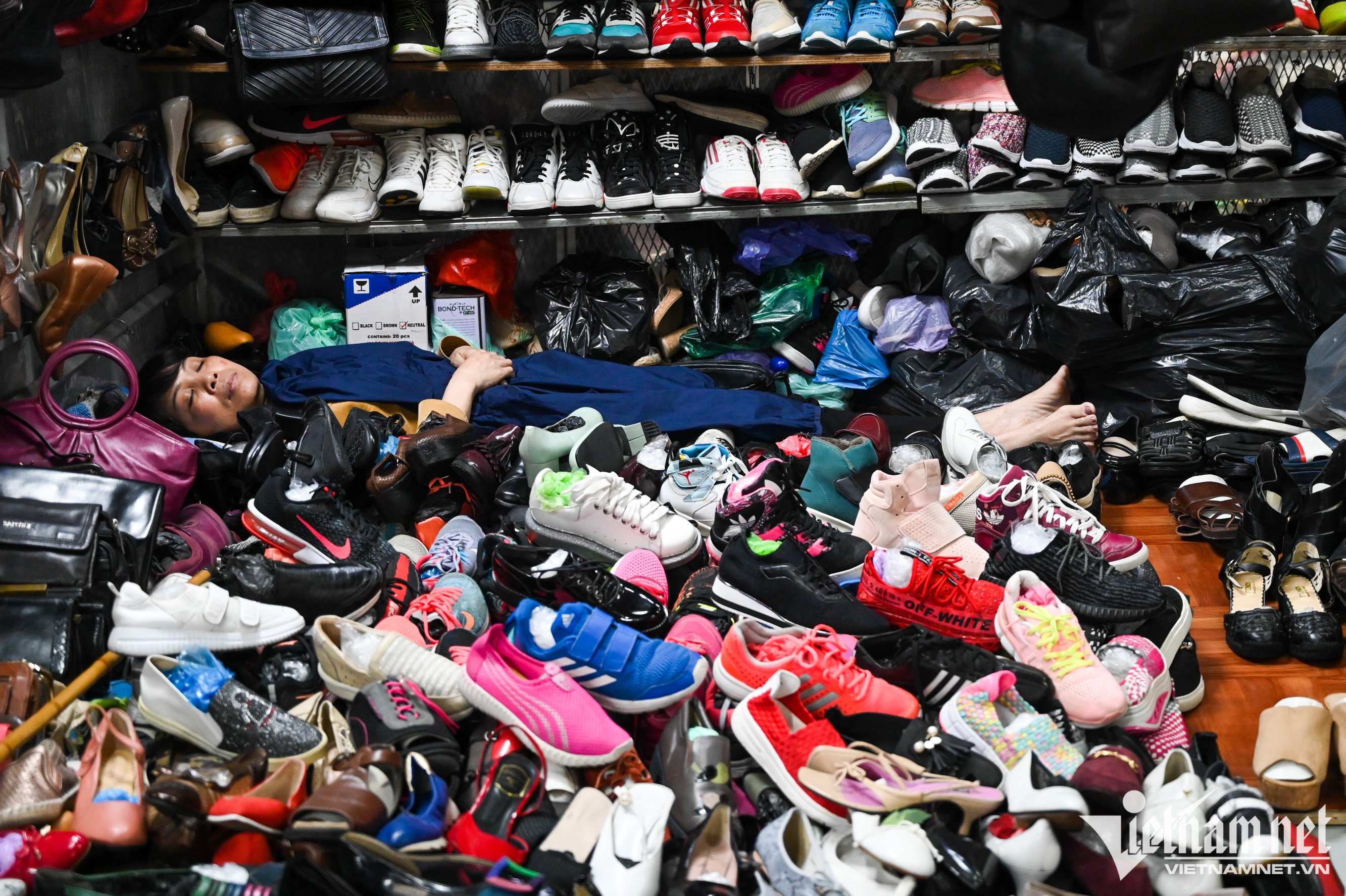 Gian hàng giày dép của người đàn ông này, doanh thu chủ yếu từ kinh doanh online và khách mua sỉ.