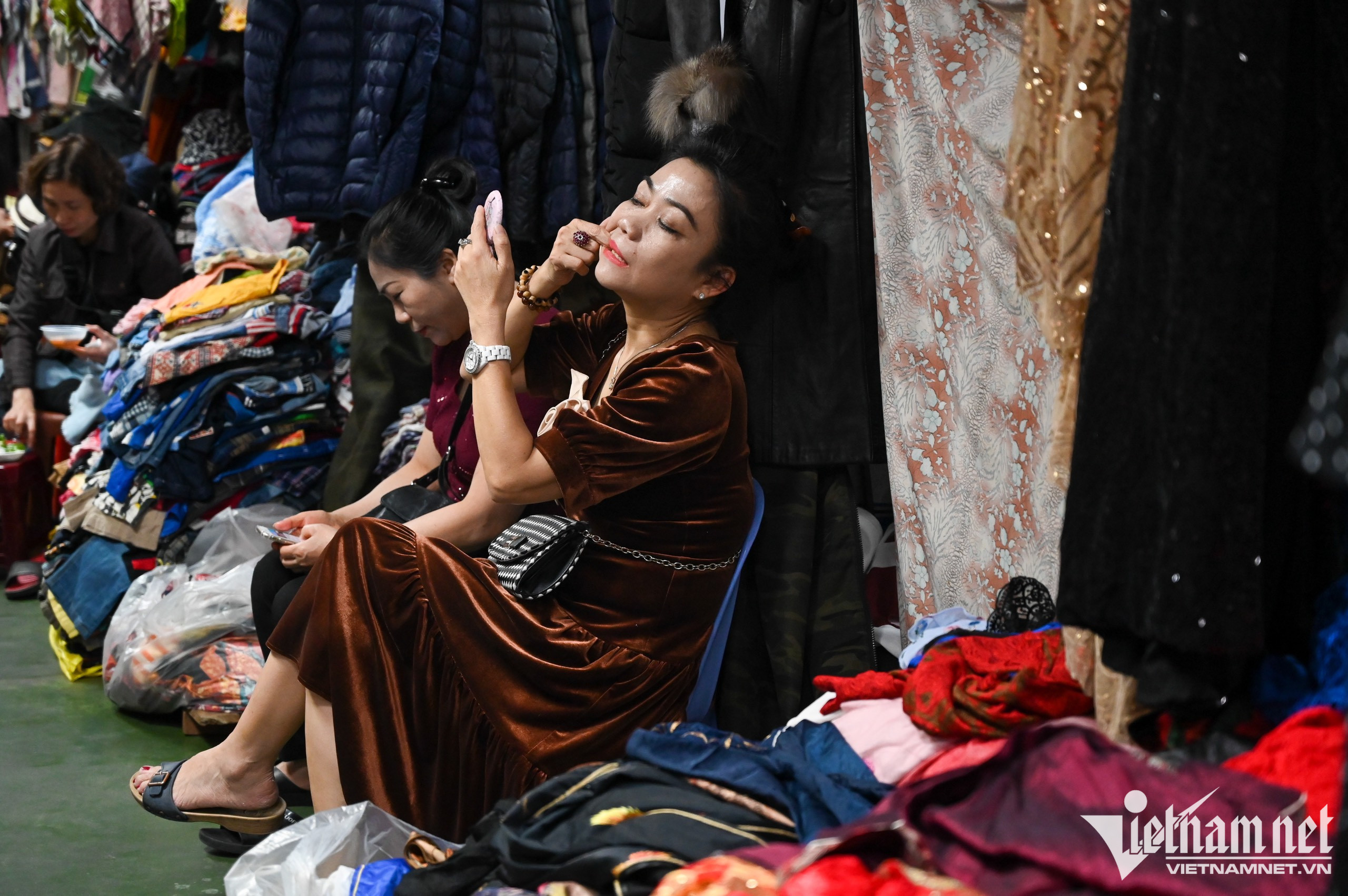 Tình trạng ế ẩm khiến dân buôn bán chán nản. Họ ngồi lướt điện thoại, chơi game và tán gẫu với nhau để giết thời gian.