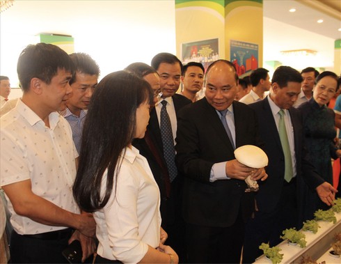 Thủ tướng Chính phủ Nguyễn Xuân Phúc cùng các đại biểu tham quan gian hàng sản phẩm nông nghiệp Hải Phòng. |