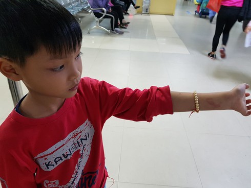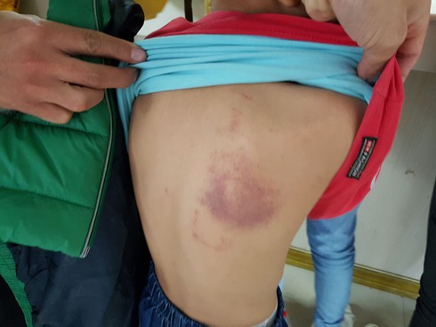 Theo anh Công, không chỉ bị đánh vào lưng mà vai, tay của con anh còn bị nhiều vết thâm tím do cô giáo X. gây ra.
