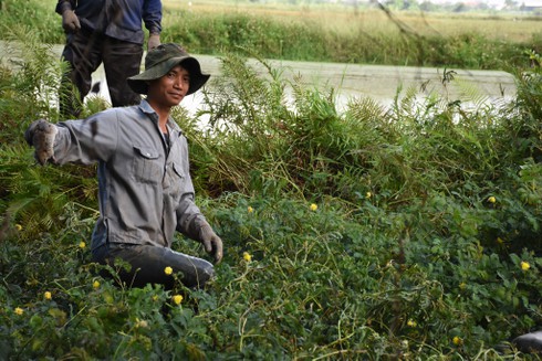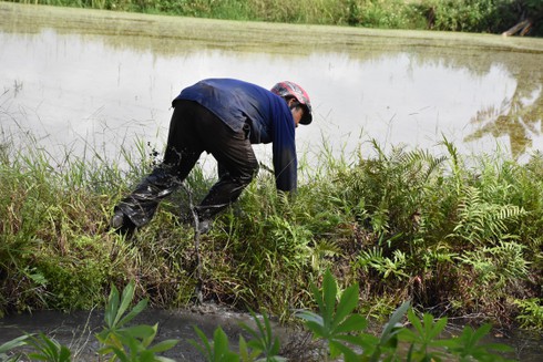 | Người dân bắt chuột tại cánh đồng xã Hữu Bằng (Kiến Thụy). |