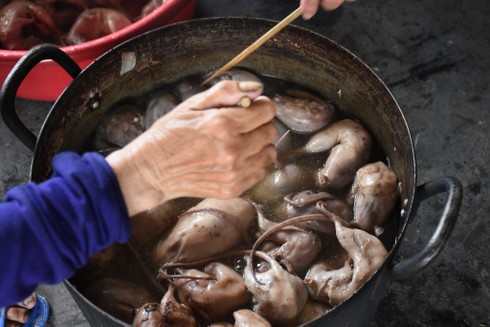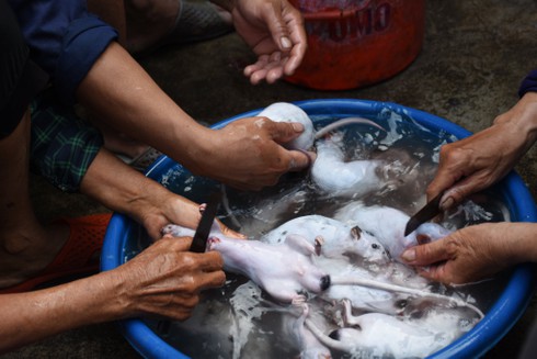 Theo người dân làng Tú Đôi, thịt chuột có thể luộc, hấp, nấu giả cày hoặc rán..., ngon hơn thịt gà. |