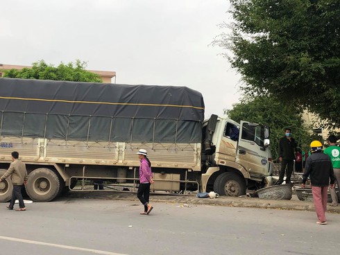 Xe tai quay ngang ra đường sau cú va chạm. |