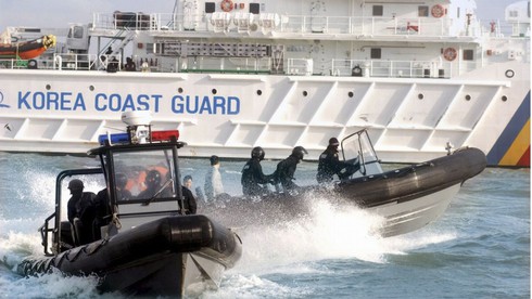 Lực lượng bảo vệ bờ biển Hàn Quốc diễn tập. |