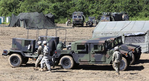 Lính Mỹ chuẩn bị cho cuộc tập trận tại Paju (Hàn Quốc), nằm gần biên giới Triều Tiên. |