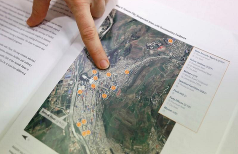 Một thành viên của tổ chức TJWG chỉ các địa điểm phạm nhân bị hành quyết công khai ở Triều Tiên mà tổ chức này thu thập được. Nguồn: Reuters |