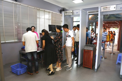 Du khách và người dân thực hiện kiểm tra an ninh trước khi vào Lăng viếng Bác. |