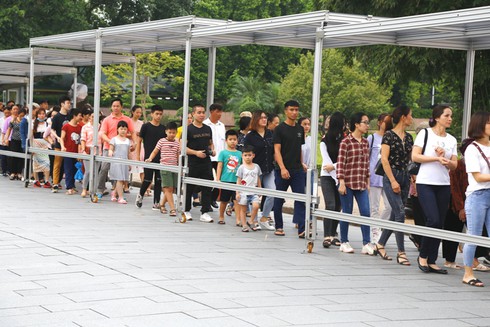 Mặc dù dòng người rất dài, phải xếp hàng rất lâu mới có thể được vào Lăng viếng Bác nhưng ai ai cũng đều nghiêm túc chấp hành sự hướng dẫn của cán bộ, nhân viên, chiến sỹ Ban Quản lý Lăng để xếp hàng vào Lăng viếng Bác.
