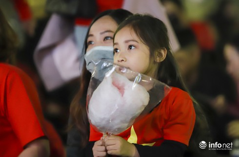 Các cổ động viên nhí, được kèm bởi bố mẹ cũng háo hức xem các bàn thắng đội tuyển U22 Việt Nam.
