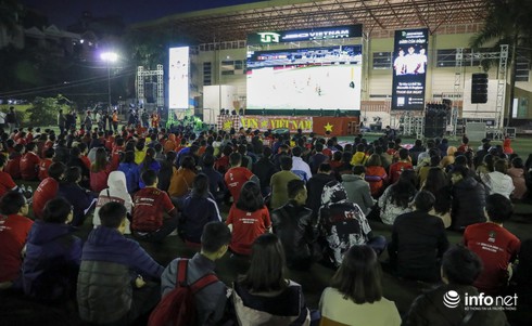 Tại sân bóng trường Đại học Y Hà Nội, hàng ngàn cổ động viên nhiệt tình đã đến cổ vũ trận đấu bán kết của đội tuyển U22 Việt Nam.
