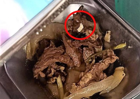 Sinh vật "lạ" được cho là dòi trong suất ăn của công nhân. |
