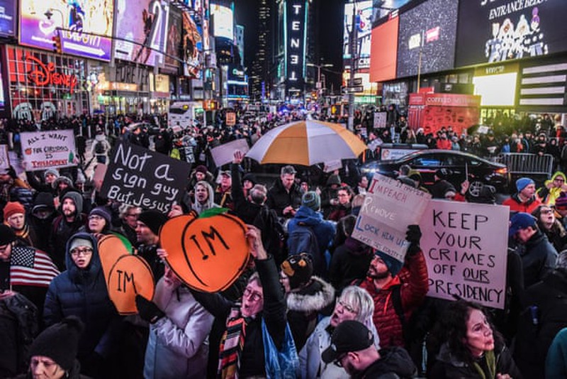 Vài giờ trước khi Hạ viện Mỹ bắt đầu phiên tranh luận và bỏ phiếu, có thể khiến ông Trump trở thành Tổng thống thứ ba trong lịch sử nước Mỹ bị luận tội, hàng nghìn người dân Mỹ trên khắp đất nước đã xuống đường thể hiện quan điểm ủng hộ với khẩu hiệu “Không có bất kỳ ai đứng trên luật pháp”.