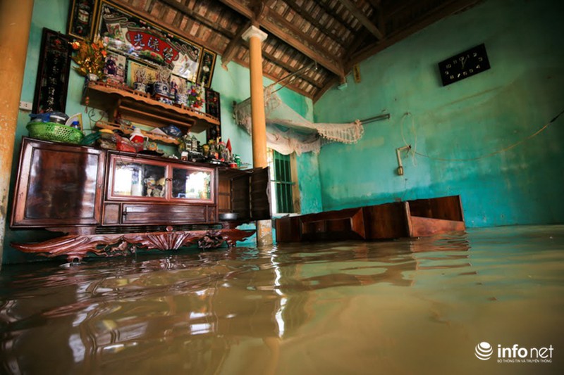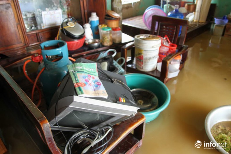 Còn ở trong nhà, các vật dụng, đồ đạc sinh hoạt trong gia đình như tivi, tủ lạnh, thóc đều bị ngập ướt. |