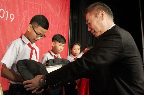 Ông Keiji Kaneko, Tổng Giám đốc Công ty Ajinomoto Việt Nam trao học bổng cho các em học sinh. |