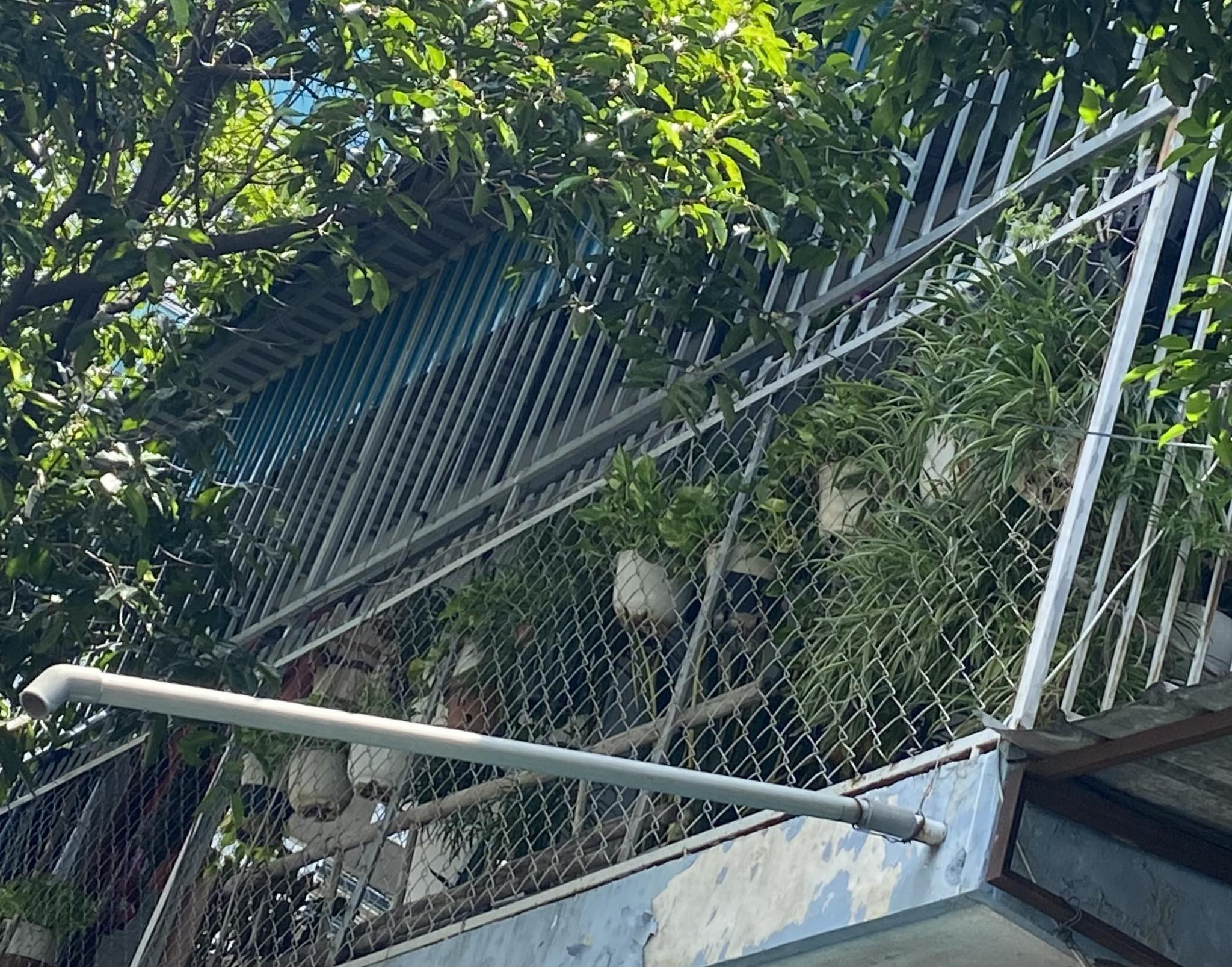 Nghe tiếng tri hô cháy, gia đình bên trong nhà tỉnh dậy, tháo chạy ra ban công tầng 2 nhưng lối thoát này đã bị bịt kín bằng "chuồng cọp" sắt kiên cố.