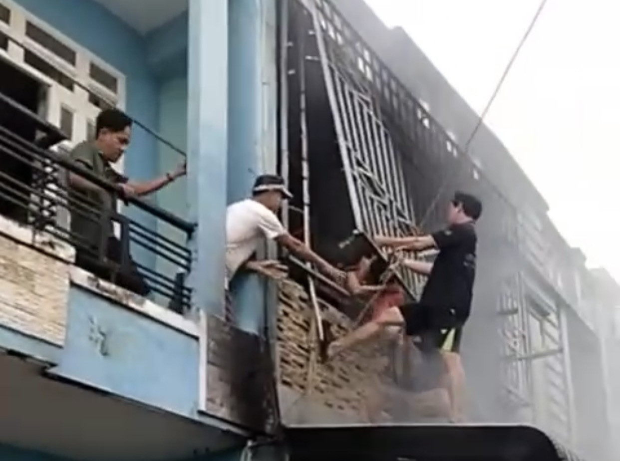 Hàng xóm phá 'chuồng cọp' cứu 3 người mắc kẹt trong căn nhà bốc cháy ở TP.HCM