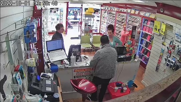 Sau khi mở các ngăn kéo trong cửa hàng để tìm kiếm đồ vật có giá trị, tên trộm đã xuống bếp mở tủ lạnh lấy nước uống. Trong lúc uống nước, đối tượng vô tình kéo khẩu trang xuống và để lộ mặt trước màn hình camera an ninh.