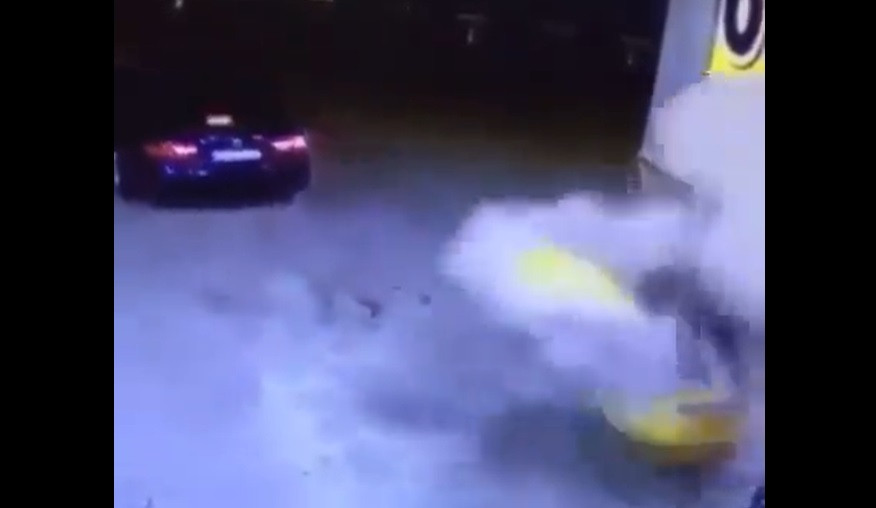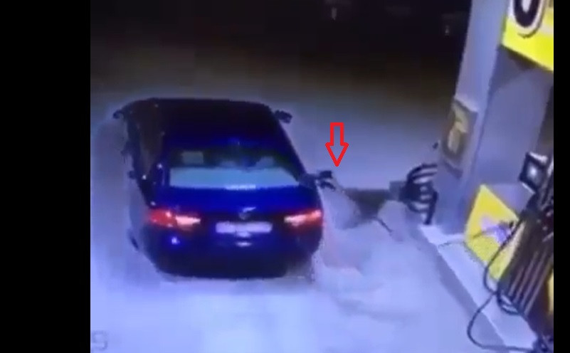 Đoạn clip ghi lại cảnh một chiếc ô tô vào trạm xăng để đổ xăng. Tuy nhiên, sau khi đổ xăng xong tài xế lên thẳng xe rời đi mà quên rút vòi bơm. Hành động sơ suất này đã dẫn tới sự cố chiếc xe kéo đổ cả cột bơm xăng, gây cháy dữ dội.
