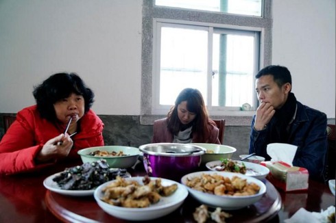 Yuqing đang ăn cơm cùng gia đình nhà "bạn trai". |
