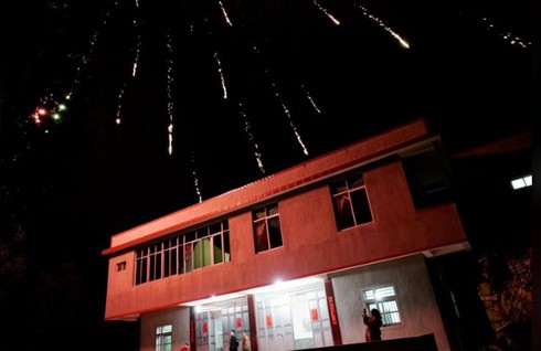 Cùng gia đình nhà "bạn trai" xem bắn pháo hoa. |