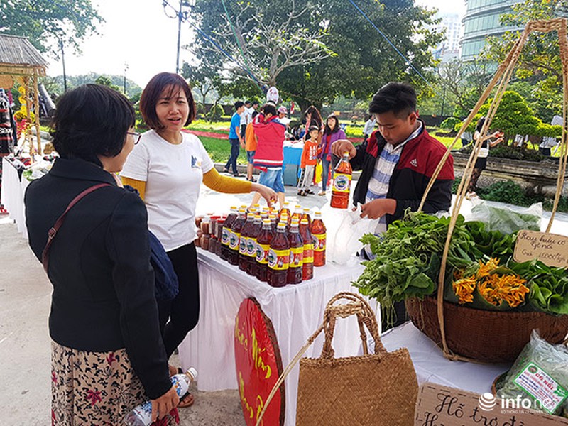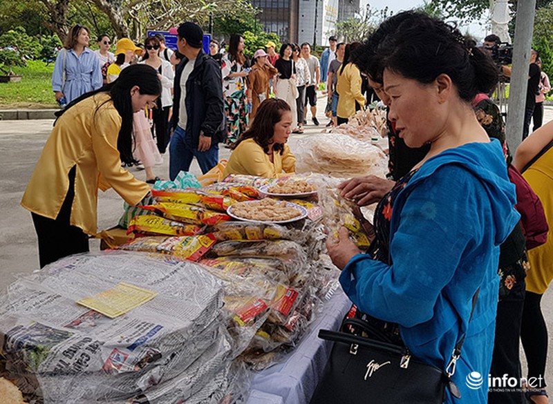 Phiên chợ bày bán các sản phẩm đặc trưng của địa phương như nước mắm Nam Ô...