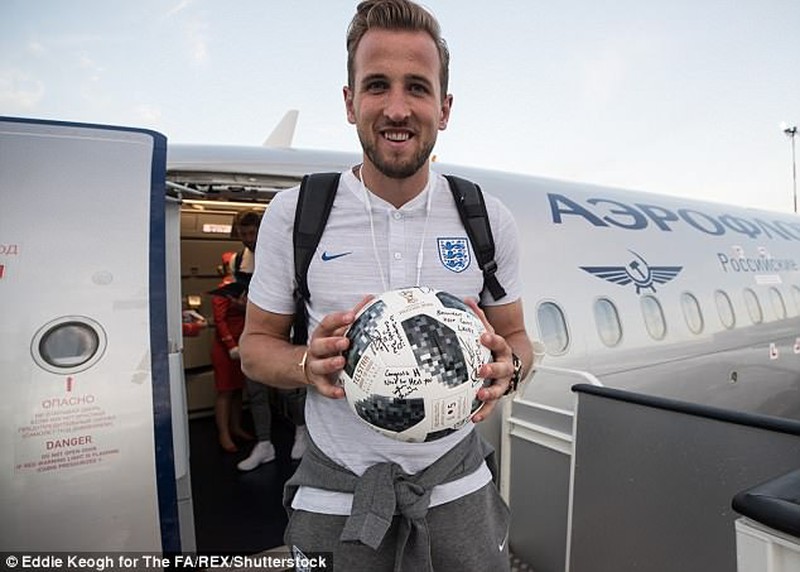 Harry Kane không rời trái bóng, ngay cả khi đã lên máy bay. |