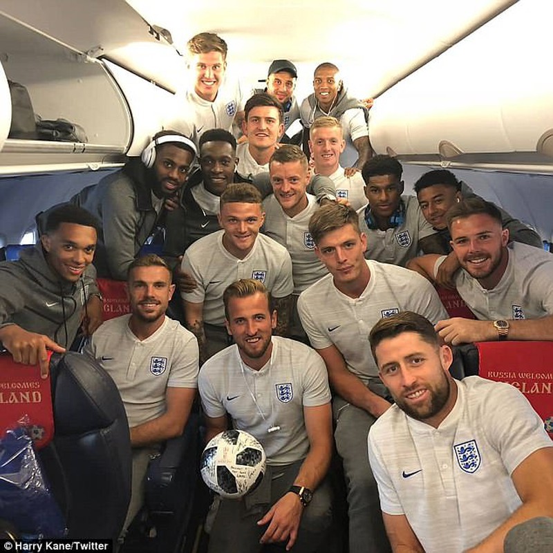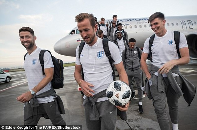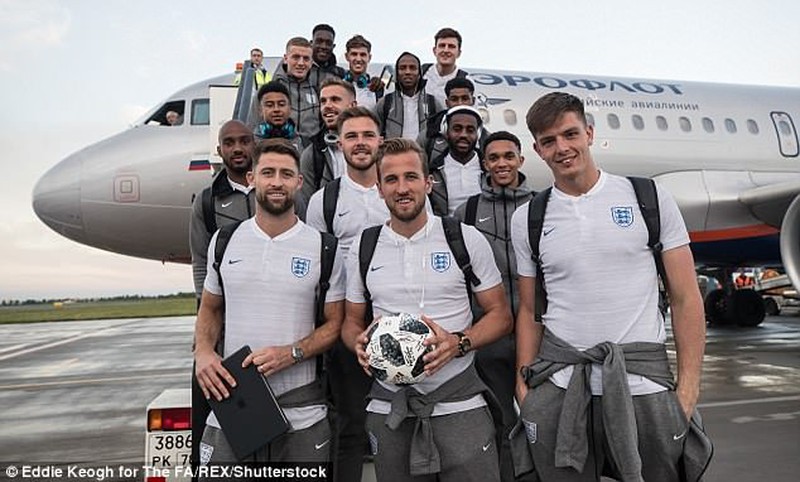 Harry Kane và các đồng đội trở vềSt Petersburg ngay sau trận đấu với Panama. Bên phải anh là trung vệ đội trưởng Garry Cahill. Trung vệ 33 tuổi của Chelsea chưa ra sân tại World Cup này. |