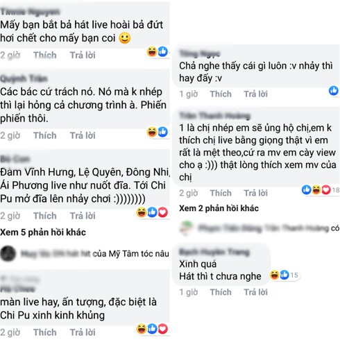 Khán giả liên tục thể hiện trình độ "đá xéo" đỉnh cao của mình với những bình luận về phần live của nữ ca sĩ Chi Pu. Gần như hầu hết khán giả đều công nhận Chi Pu hát nhép chứ không hề hát live như cô tuyên bố. Dù vậy, kể cả khi cô hát nhép giọng vẫn bị chê là yếu và có phần khó nghe. |