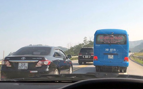 Ô tô vô tư lấn làn trên cao tốc Hà Nội - Lào Cai ngày 10/2/2019 vừa qua. |
