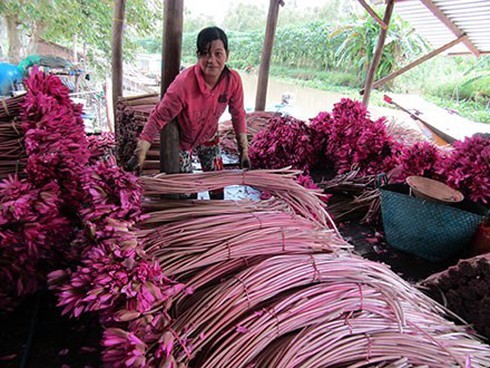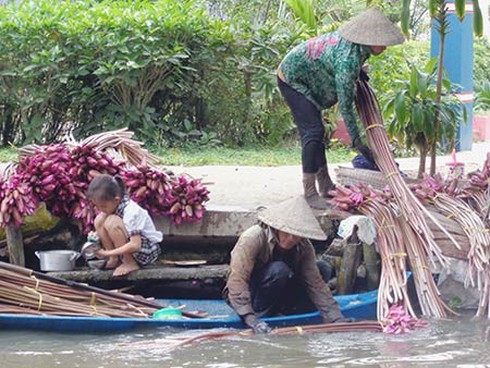 Từ đó, bông súng đỏ của những hộ này đã trở thành tâm điểm hàng “nông sản” của nhiều thương lái.