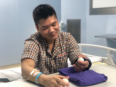 Anh Phạm Văn Vương (31 tuổi, cụt 1/3 tay trái) được các bác sĩ Bệnh viện Trung ương Quân đội 108 ghép thành công cánh tay từ một người cho sống. |