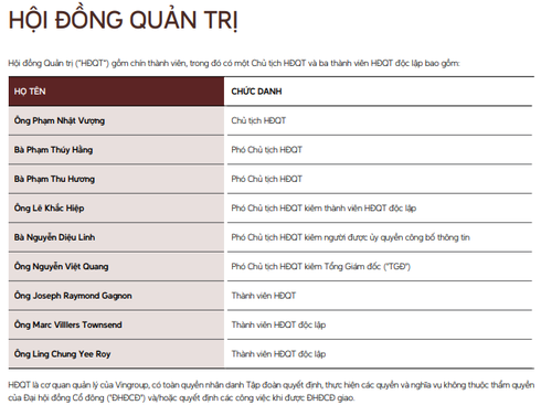 HĐQT và Ban Giám đốc của Vingroup gồm những ai?