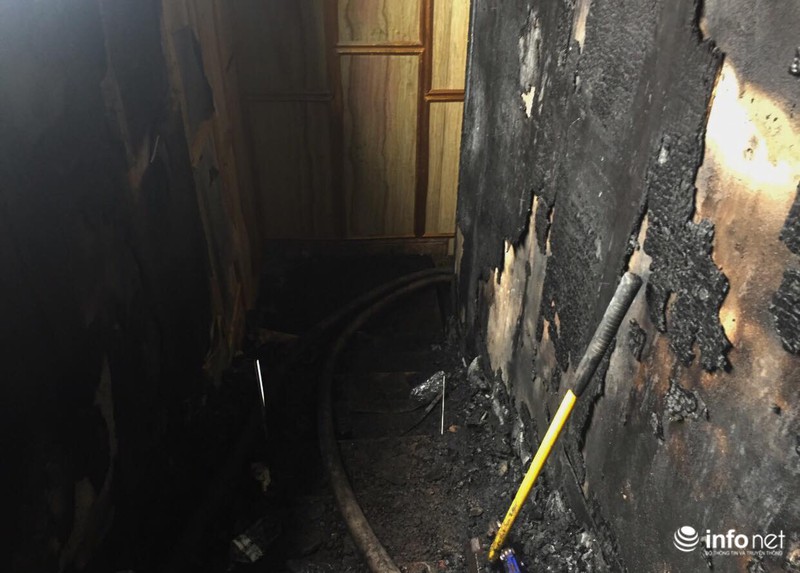 Bên trong quán karaoke Kingdom Club (số 12 đường Trần Phú, phường Thạch Trung, TP Hà Tĩnh) sau khi đám cháy được dập tắt là cảnh tượng tan hoang, đổ nát, các mảng tường đen kịt, phòng ốc tối om. Toàn bộ tầng 3-4-5 bị thiêu rụi hoàn toàn, tường phía trong các phòng hát bị bong tróc.