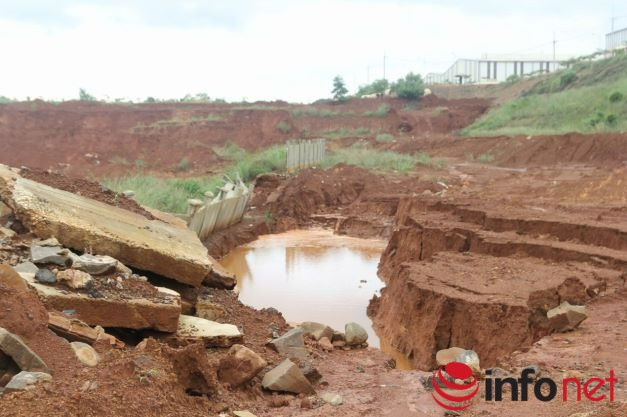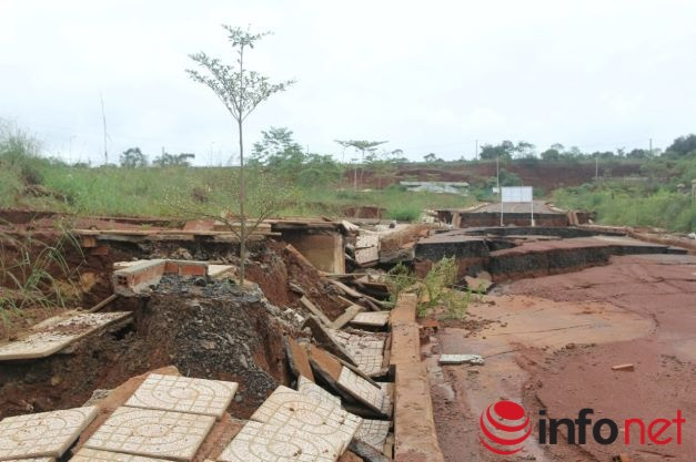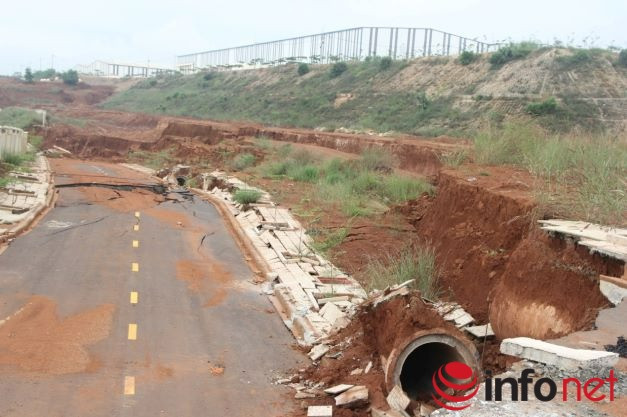 Hiện trường sụt lún cho thấy gần như các hạng mục đều bị rất nặng, thậm chí đường nhựa nội bộ bị gãy làm đôi, những mảng bê tông ở mái ta luy bị rơi xuống nát vụn. Tổng thiệt hại cho ngân sách Nhà nước là hơn 50 tỷ đồng