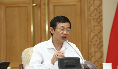 TS Nguyễn Văn Minh - Hiệu trưởng ĐH Sư phạm Hà Nội - tại buổi làm việc với Phó thủ tướng Vũ Đức Đam sáng 17/8. Ảnh: Đình Nam. |