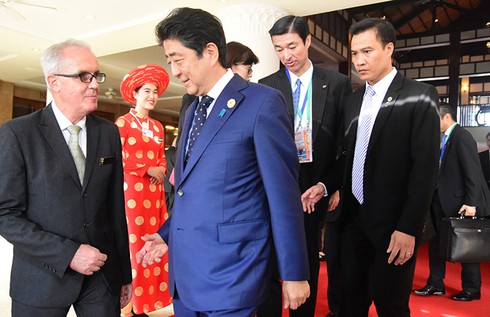 Thủ tướng Nhật Bản – Shinzo Abe sau khi dùng bữa trưa tại nhà hàng Don Cipriani’s của Furama Resort Đà Nẵng cũng di chuyển nhanh sang Cung hội nghị Furama Đà Nẵng dự tọa đàm.