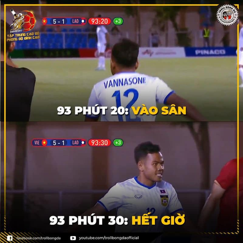 Người xưa có "7 bước làm thành bài thơ", ngày nay có anh Vannasone 3 bước đá xong trận bóng. Đây có lẽ là khoảnh khắc đau lòng nhất với cầu thủ số 12 nhưng lại khiến khán giả không thể nhịn cười vì độ nhọ của anh chàng.