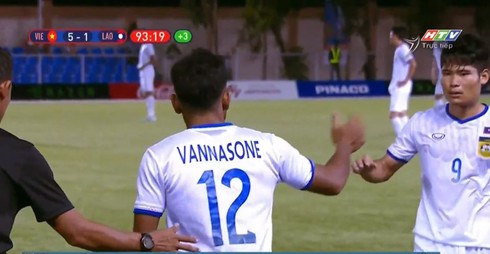 Không biết mục đích của ông Sundramoorthy là gì, thế nhưng với pha xử lý "cồng kềnh" này, ông đã vô tình khiến Vannasone trở thành cầu thủ "tỏa sáng" nhất trận đấu, theo hướng vô cùng...đáng thương.