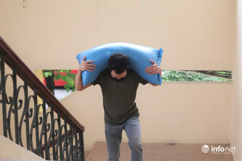 Trong sáng nay, đơn vị tổ chức đã liên tục mang gạo đến để phát cho người dân. |