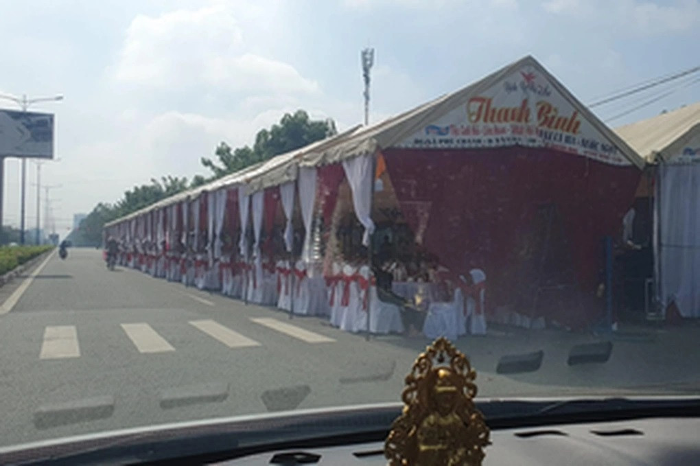 Hình ảnh dựng rạp đám cưới giữa đường ở Bình Dương gây bức xúc